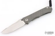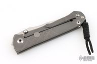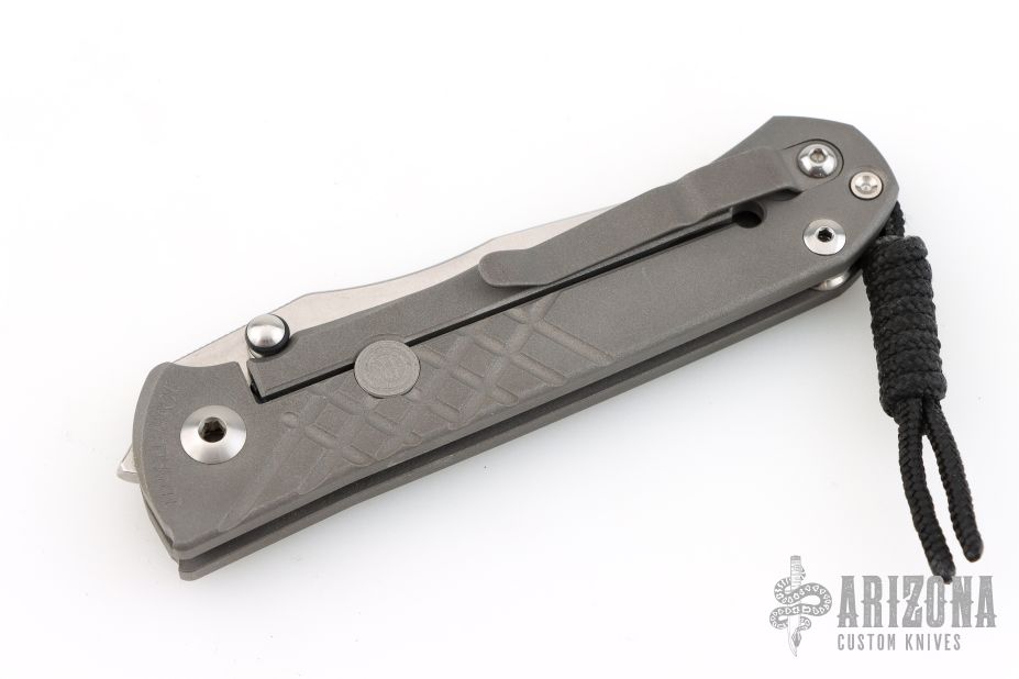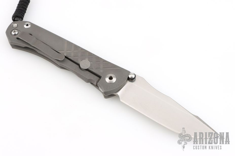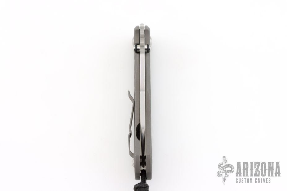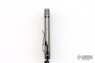 This Umnumzaan Framelock Folder by Chris Reeve Knives has a stonewashed/polished clip point blade with dual thumb studs and notched thumb rest. Handle is bead blasted titanium with titanium barrel spacer, titanium tip up clip, and lanyard hole with lanyard. Nice detent, lockup and blade seating. Comes with original box, tools, lube, and papers dated October 30, 2017. Has been resharpened with a mirror edge, has some light scuffs and scratches, great overall condition.
