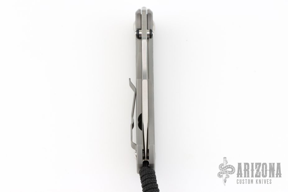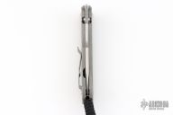 This Unumzaan from Chris Reeve Knives features a stonewash finished tanto blade with dual thumb studs and notched thumbrest. The handle is comprised of glass blasted and milled titanium with matching tip up clip. Comes with lanyard pin with lanyard and spacer bead in box. Comes with original box, papers, cloth, lube, tools and COA dated November 26, 2024. Excellent condition.