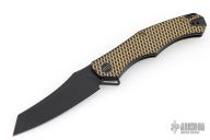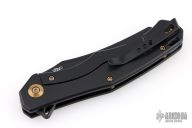 This master-crafted WE Rekker Frame Lock is approximately 4 5/8 inches long (folded/closed) and weighs approximately 3.5 ounces. The contoured handle is textured Golden & Black anodized 6AL4V Titanium with a Golden pivot cap, Titanium screws, Golden & Black Titanium reversible tip-up pocket clip, and a lanyard hole. This knife utilizes a 3 5/8" Locking Reverse Tanto blade with a plain edge, flat grind, 3.2mm (0.13") thickness, thumb ramp, and finger lever/guard. The blade material is CPM 20CV Stainless Steel (58-60HRC) with a Black Stonewashed finish. The knife is presented with an extra left-carry Titanium pocket clip & clip screws, a storage pouch, and Microfiber cleaning cloth. This Rekker Frame Lock is a professional-grade tool that comes with a Limited Lifetime Manufacturer's Warranty and is not designed nor intended to be used on or against humans. So, whether you're searching for authentic cutlery to collect, a top quality knife to give as a gift, or a superior tool to use, don't pass this one up!
