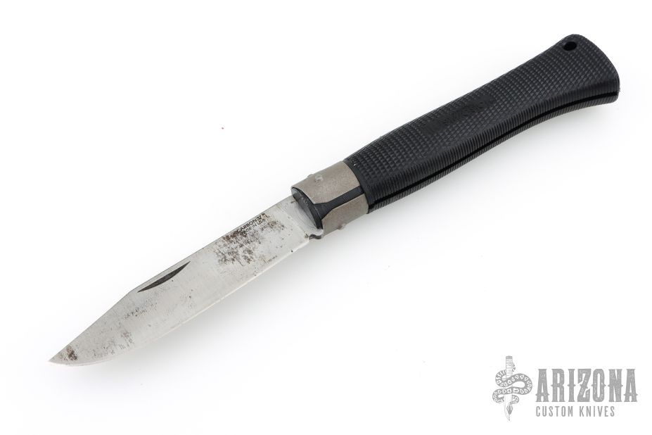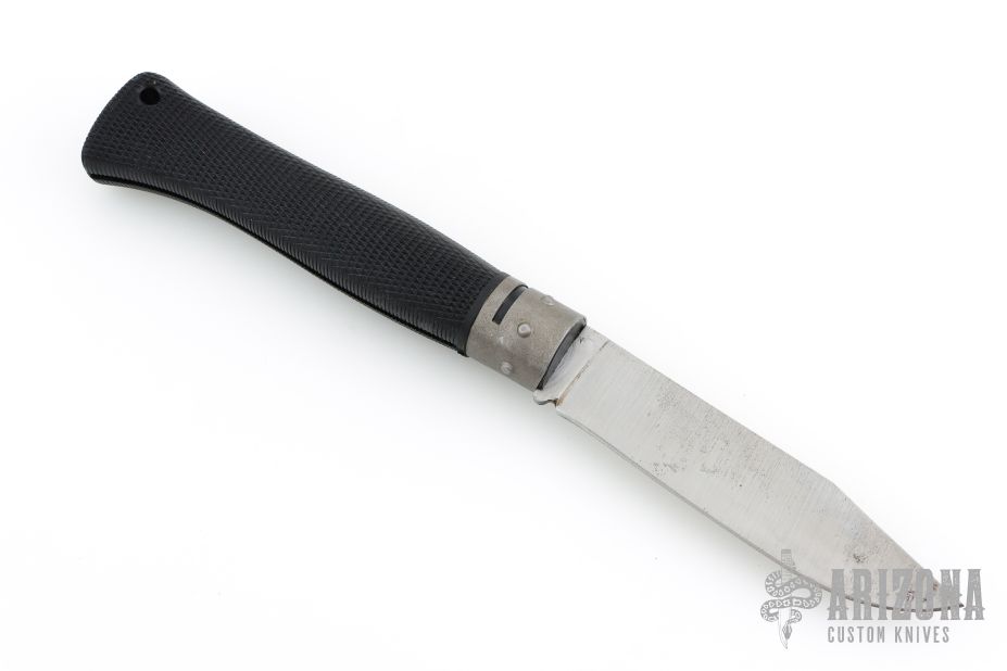 This Cold Steel Twistmaster features a satin finished blade and a strong molded handle with a ring locking blade. Original factory edge.  From Lynn Thompson's collection includes a COA attetsing to authentinicity. Has some oxidation and scratches, great condition otherwise.