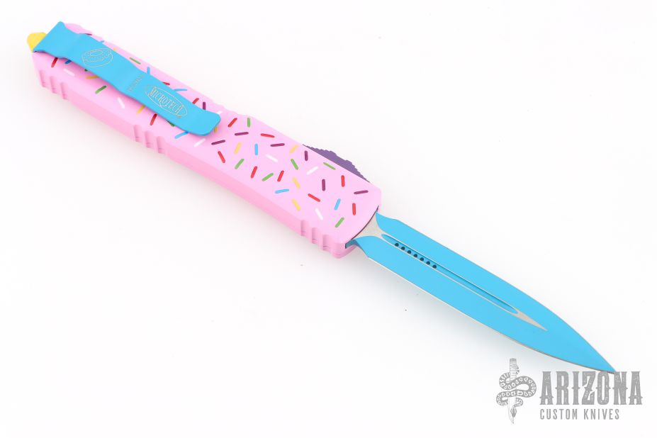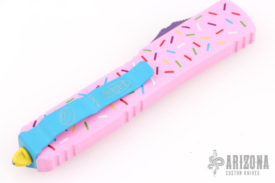 This Ultratech OTF automatic by Microtech features a D/E blue blade. Dessert Warrior aluminum contoured frame with tip down stainless steel clip. Dated 06/2023. Comes with original box. Excellent condition.