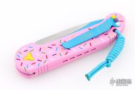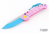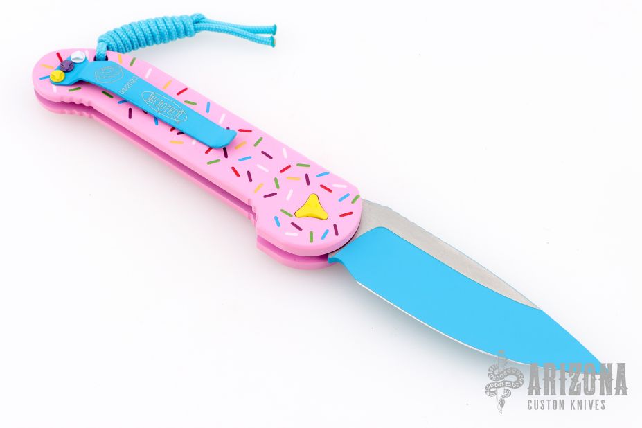 This LUDT by Microtech features a two-tone coated blade with fullers. The handle has a Dessert Warrior coated aluminum frame with multicolor hardware and tip up clip. Dated 03/2023. Comes with original box and papers. Excellent condition.