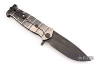 This USMC Fighter Flipper by Medford features a black PVD finished drop point blade with a fuller and a notched flipper tab.  The handle features a tumbled titanium frame with black PVD ascents with a matching tip up titanium clip.  Includes the original box, hard case and papers dated November 8, 2021. Excellent condition.