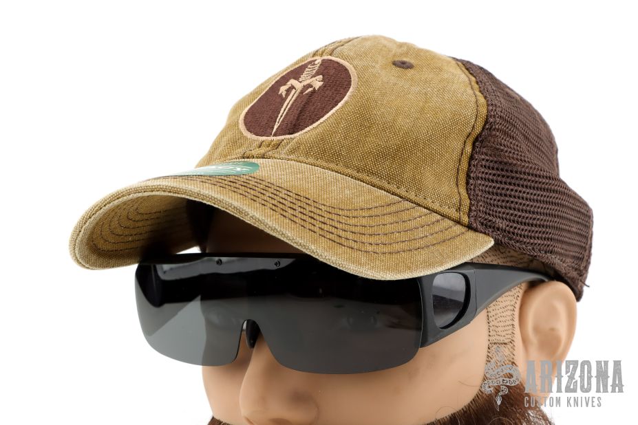 2 Hats - Microtech & Marfione Custom Knives. Excellent condition. Sunglasses and Head not included.