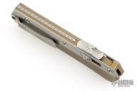 This Glykon by Microtech features a stonewash finished tanto blade with fullers and notched thumbrest. The handle has an OD finished aluminum chassis with bead blast finished titanium overlays and titanium tip down clip. Comes with original box and papers. Dated 01/2025.  Has a couple light scratches, otherwise xcellent condition.