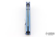 This Malibu model has a blue anodized titanium handle and a sheepsfoot blade.