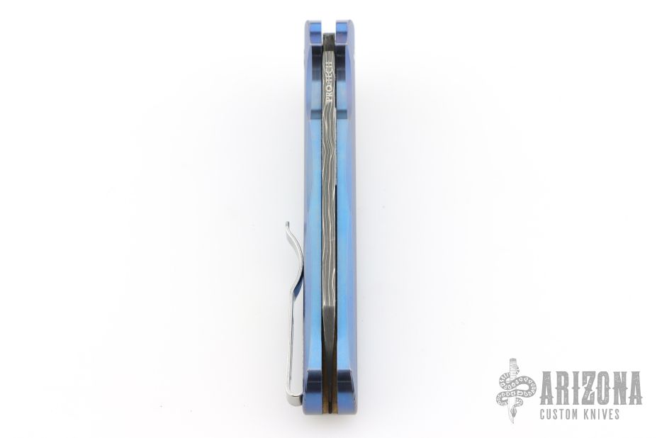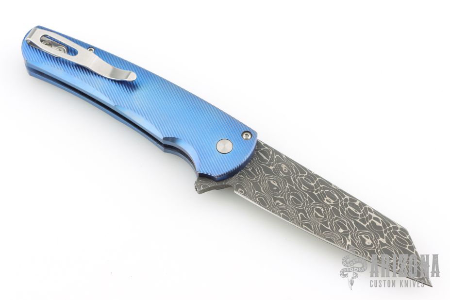 This Malibu model has a blue anodized titanium handle and a sheepsfoot blade.