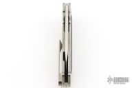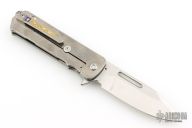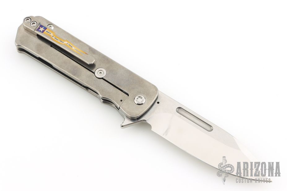 This TFF-4 by Medford Knife and Tool features a satin polish finished spear point blade with fullers and flipper. The handle is comprised of tumbled titanium with G10 inlay, and satin tip up clip over a steel backspacer/glass breaker. Has a couple light scuffs and scratches, excellent condition otherwise.