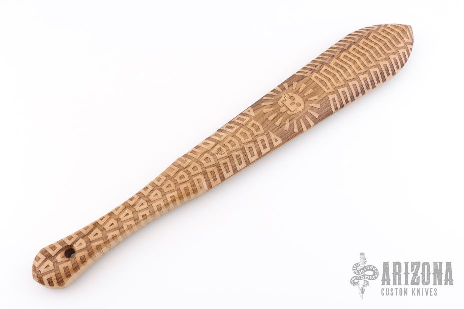 This Bone Breaker features full laser engraved wood construction. Lead filled center. New condition.