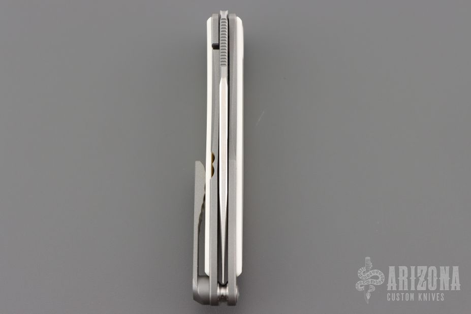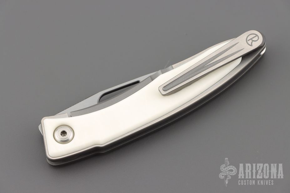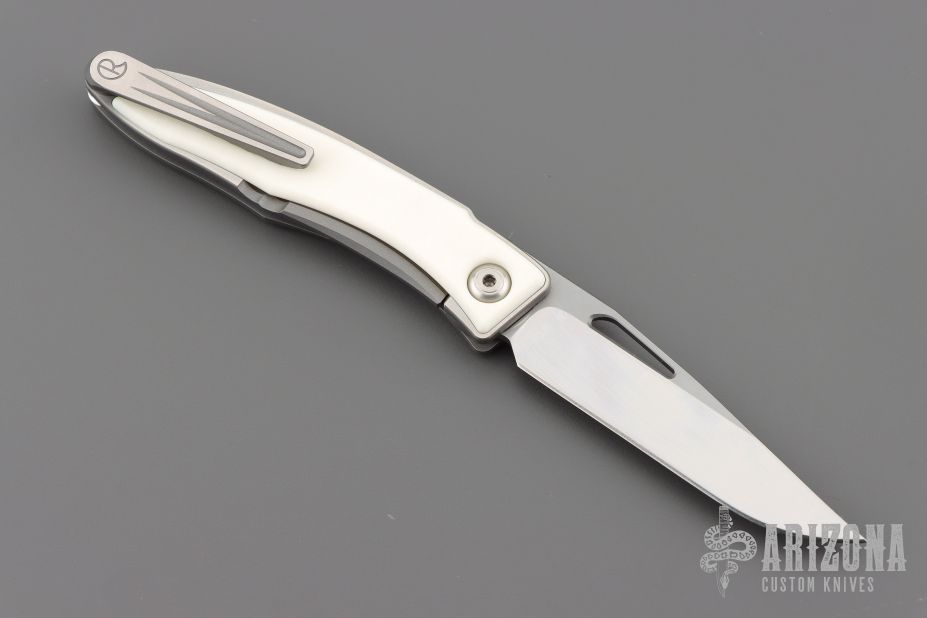 This Mnandi by Chris Reeve Knives has a satin finished blade with notched thumbrest and nail nick. The handle has a bead blasted and satin finished titanium frame with Elforyn inlays. Titanium clip, tip up carry. Comes with original box, cloth, lube, tool, sheath and COA dated May 11, 2022. Excellent condition.