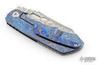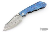 This EVO 1.1 by Custom Knife Factory features a Damasteel blade with notched thumbrest and thumbhole. The handle has a ZircuTi scale, black bark finished titanium frame with a tip up ZircuTi clip and notched backspacer. Comes with original case, extra hardware, cloth, and COA. Nice detent, lockup and blade seating. #72 and dated 9-25. Excellent Condition.