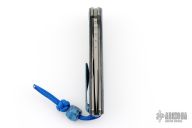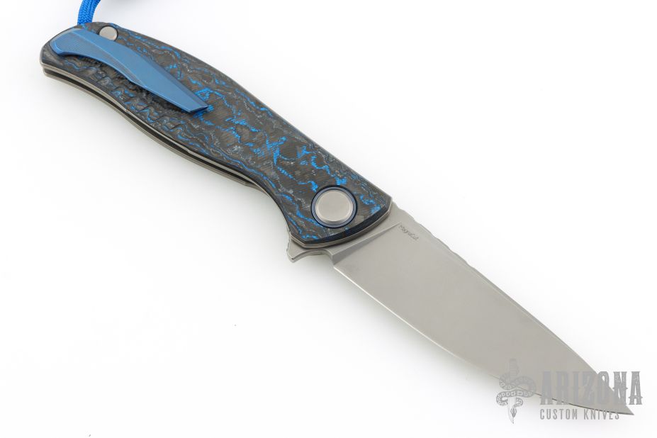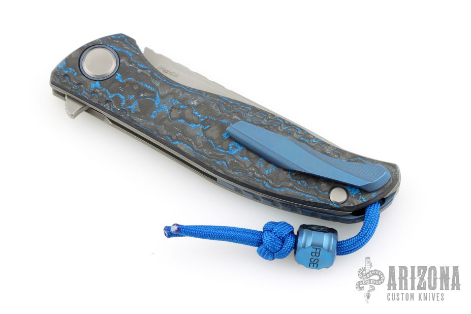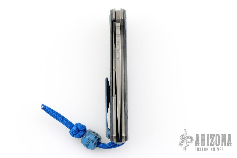 This Shirogorov Facebook Group Special Edition features a MagnaCut blade on MRBS bearings with "Glacier" Technocarbo scales and titanium liner lock construction. Blue anodized titanium accents include the pivot collars, backspacer, pocket clip, and "FB SE 2025" lanyard bead. Milled weight-reduction pockets and included box, cloth, and COA.  Excellent condition.