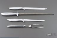 Siegfried (fork), hidden tang with an aluminum handle. 4" tines, 10.75" Overall length, weighs 3.7oz. Has scratches, otherwise good condition for its age.
