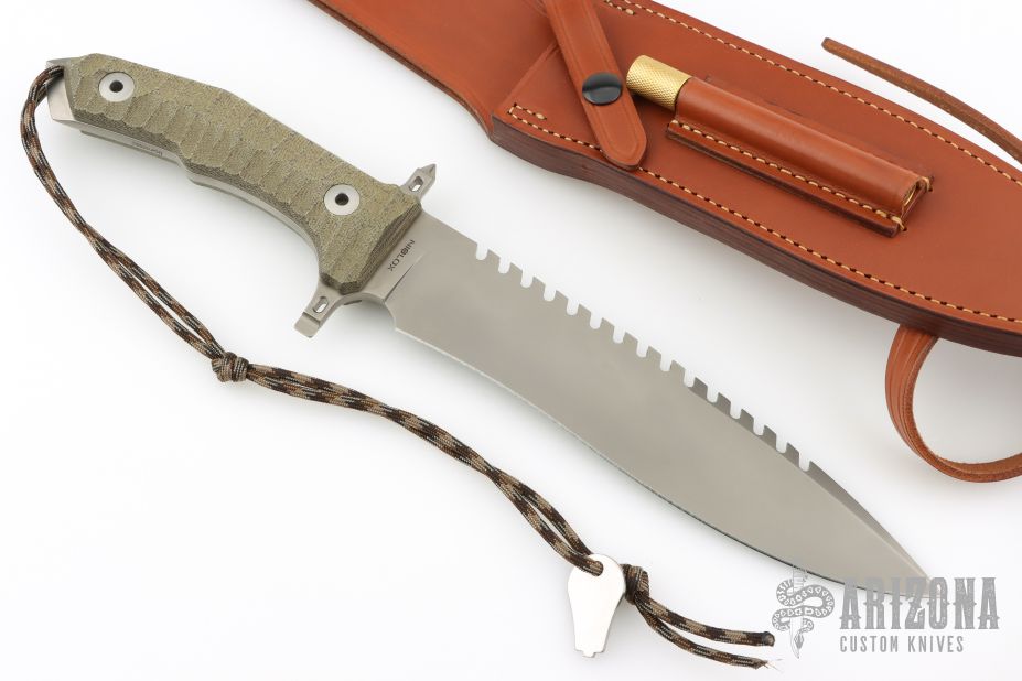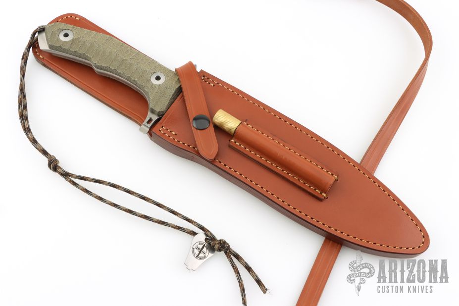A homage to the beginnings is also the diamond knife sharpener, which completes the leather sheath of the MK-9 Legacy. The American classic is manufactured by Eze-Lap from Carson City, Nevada. The solid brass harmonizes perfectly with the warm brown tone of the fine leather sheath. A sturdy leg strap is also included.