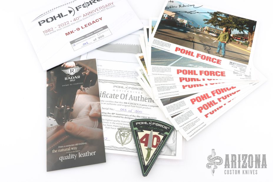 With nearly 30 years of experience in the knife industry, Dietmar Pohl created by far his most personal knife ever with the MK-9 Legacy. It was a survival knife that captivated the designer 40 years ago in the movie "First Blood" and never let go. The design, the size, the functionality and of course the use of the knife in the hands of a fighter and survival expert left a previously unimagined impression. What followed was an unprecedented career in the knife industry, which led an astonishing 36 years after the German premiere of the film "First Blood" to Dietmar Pohl developing the knife for "Last Blood" precisely for his action hero. Which closed a circle for him personally after decades.