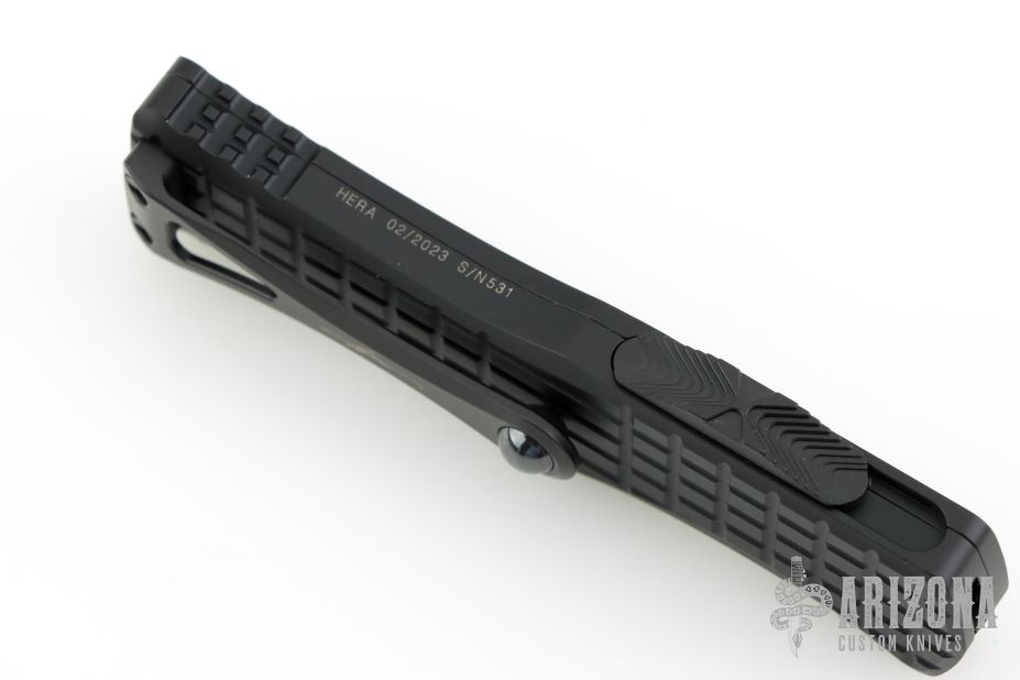 The Hera is a beautiful dual-action out-the-front automatic with a frame shape loosely based on the Troodon design. It's more ergonomic, however, with machined patches nears the ends for better purchase and an improved look in our opinions. Everything about this design screams both sophistication and functionality. It's one of the best all-around OTF automatic designs in an exceedingly crowded field and sized just right for daily carry.