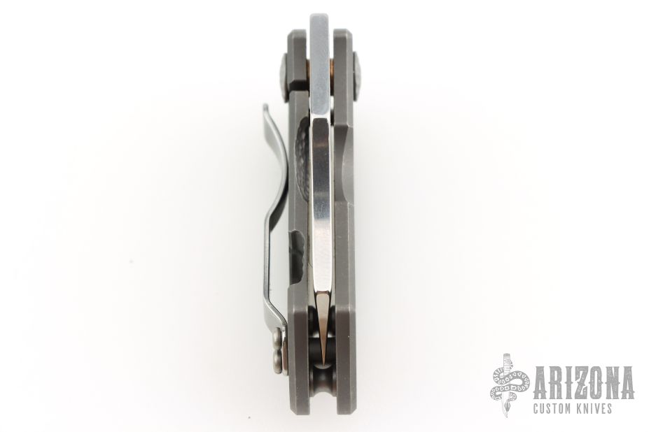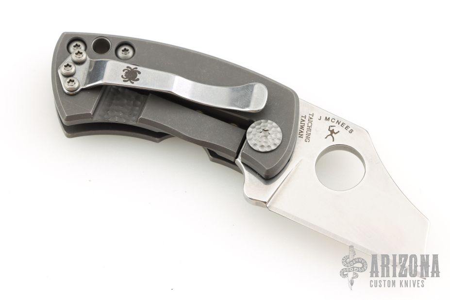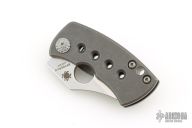 Jonathan McNees is a veteran US Marine and an avid outdoorsman whose real-world knife-using experience shines through in all his custom designs. His ultra-compact McNees folder, based on his popular "Killer B" model, proves that function is a matter of design, not size. Crafted from CTS-XHP, its saber-ground Wharncliffe blade offers both scalpel-like precision and impressive cutting power, as well as true one-hand-opening capability via its Trademark Round Hole. The stonewashed blade is matched to a sturdy Reeve Integral Lock (R.I.L.) built into one of the handle's solid titanium scales. A right-side, tip-up pocket clip and a lined lanyard hole guarantee convenient carry while stippled accents on the pivot screws and handle replicate McNees' signature style.