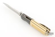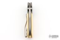 "I have been a fulltime maker since 1993 and am proud to be a voting member of the Knifemakers Guild. Most of my work is in embellished locking folders, with an occasional art fixed blade. In 1994 I began doing my own engraving and started making Damascus in 1999. I prefer natural handle materials such as mother of pearl, fossil Ivories and stone. Blade steel is my Damascus (unless otherwise noted) or one of the high quality stainless steels currently available. The embellishments I offer are engraving, gold inlay, mosaic pearl inlays, file work, carving and solid 14K gold screws and thumb studs that I make in shop."