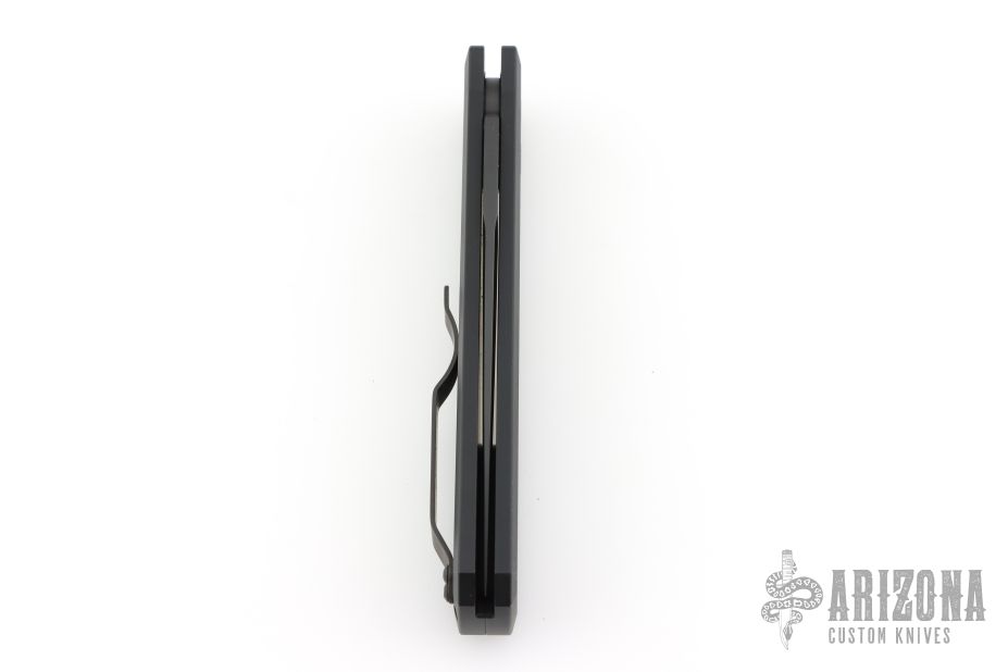This 921 SWAT Godfather features a black blade with notched thumbrest. The handle has a black aluminum frame with black hardware, black push button and black stainless steel tip up clip. Comes with original box and pouch. Has a few light scuffs and scratches, otherwise Excellent condition.