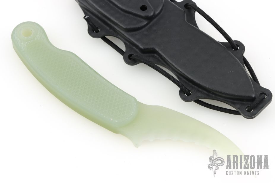 Our G10 Elvia is a lightweight non-magnetic non-permissive environment carry tool. It is machined from one solid billet of G10, a high-pressure fiberglass laminate. The G10 Elvia will fit in both Gen1 and Gen2 Elvia sheaths as well as our new non-magnetic sheath kit. The machined serrations allow for improved cutting/ripping performance in soft materials.