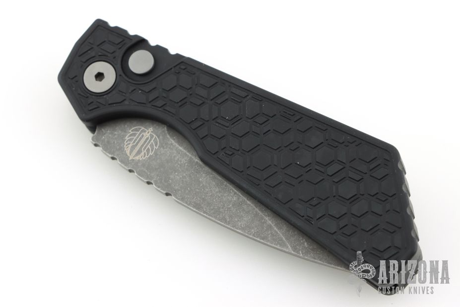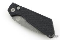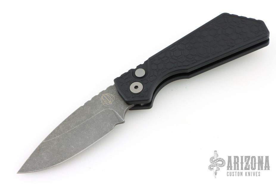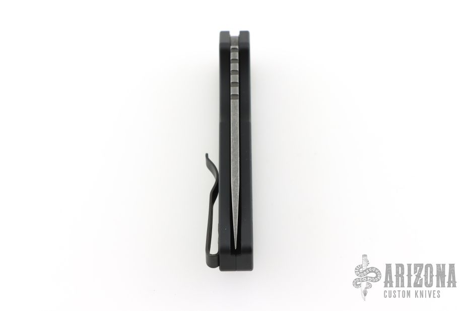 This Pro-Strider PT+ by Pro-Tech and Strider Knives features an acid etch finished blade with notched thumbrest. The handle has a milled black aluminum frame with bead blasted hardware and black stainless steel tip up clip. Comes with original packaging. Excellent condition.