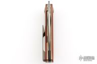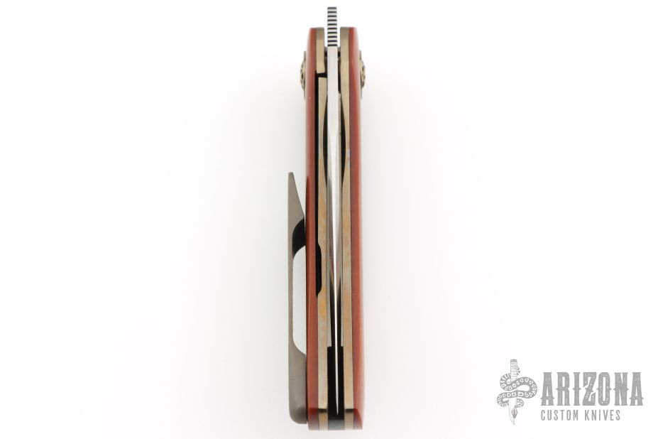 This linerlock front flipper by Journeyman Smith Charlie Lloyd features asatin finished drop point blade with swedge and flipper tab. The handle has Micarta scales, titanium liners, black G-10 backspacer, tip up titanium clip with hidden screws. Rides on Skiff bearings, nice detent, lockup and blade seating. Comes with maker's zippered case and COA. New from maker!