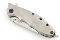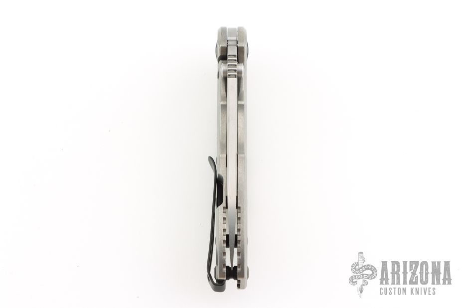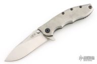 This Hinderer Designed 0562 Framelock Flipper has a drop/ spear point blade with swedge, notched thumb rest, dual thumb studs and flipper. Handle has a stonewashed titanium frame with stainless steel lockbar insert and lockbar stabilizer. Stainless steel clip is tip up. Comes with original box and papers. #15184. Has a couple light scuffs, excellent condition otherwise.