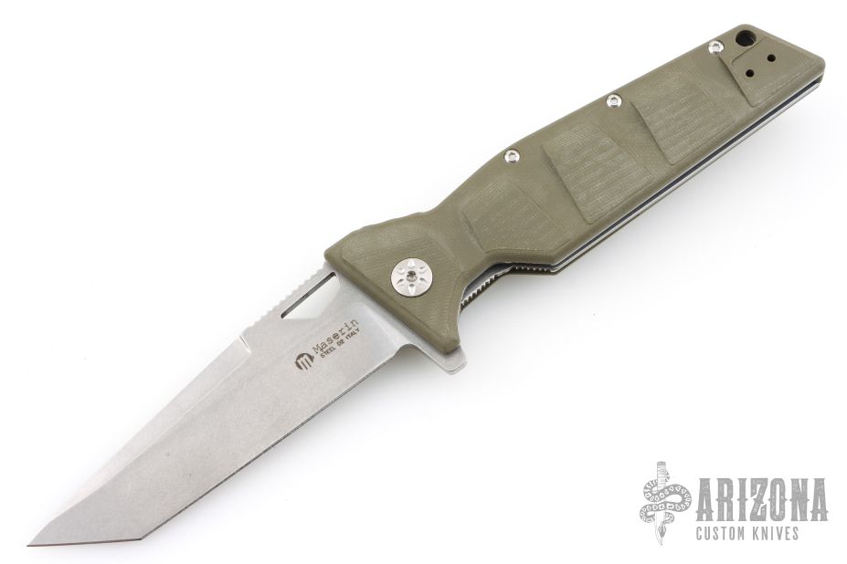 The Maserin Artiglio is a heavy duty tactical folder with an aggressive tanto blade and a textured G10 handle. It's got milled out steel liners and a large G10 back spacer, so it's durable, comfortable to use, and isn't too heavy. The flipper tab and thumb hole coupled with the prominent liner lock make it easy to open and close one handed. If you're in the market for a fast and tough folder, this could be the knife for you!