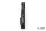 This 9052 AFO II Auto by Benchmade has a bead blasted tanto blade with a false top edge. Black anodized aluminum handle. Integrated safety system. Black stainless steel clip - 4 way reversible, and lanyard hole. Has a few light scuffs and a spot on the blade next to the makers mark, otherwise excellent condition.