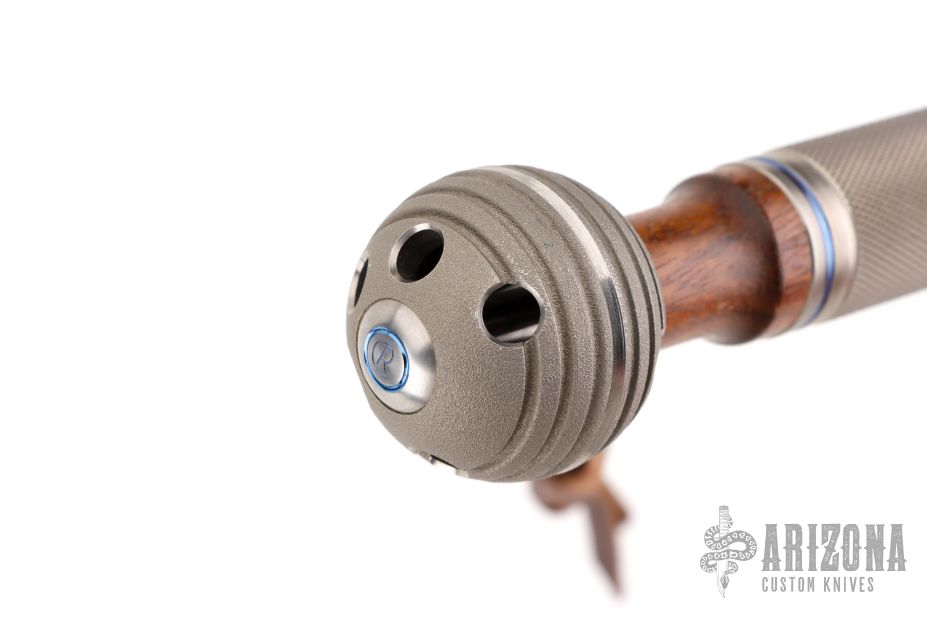 This cane has a two-tone titanium ball, ironwood shaft and two-tone anodized titanium tip. Overall 37". Excellent condition.