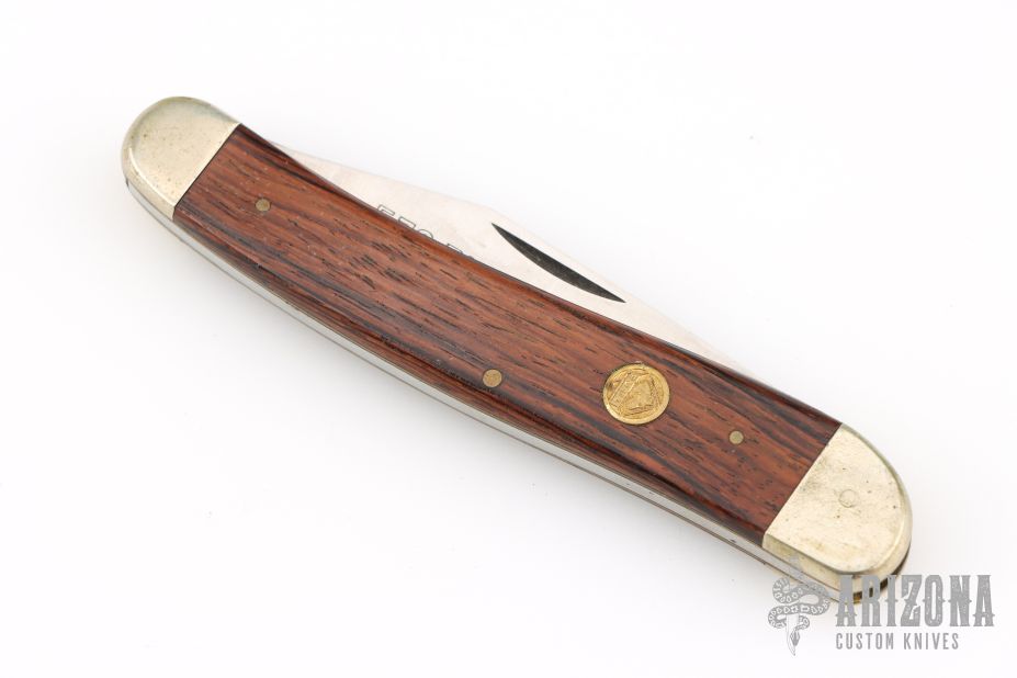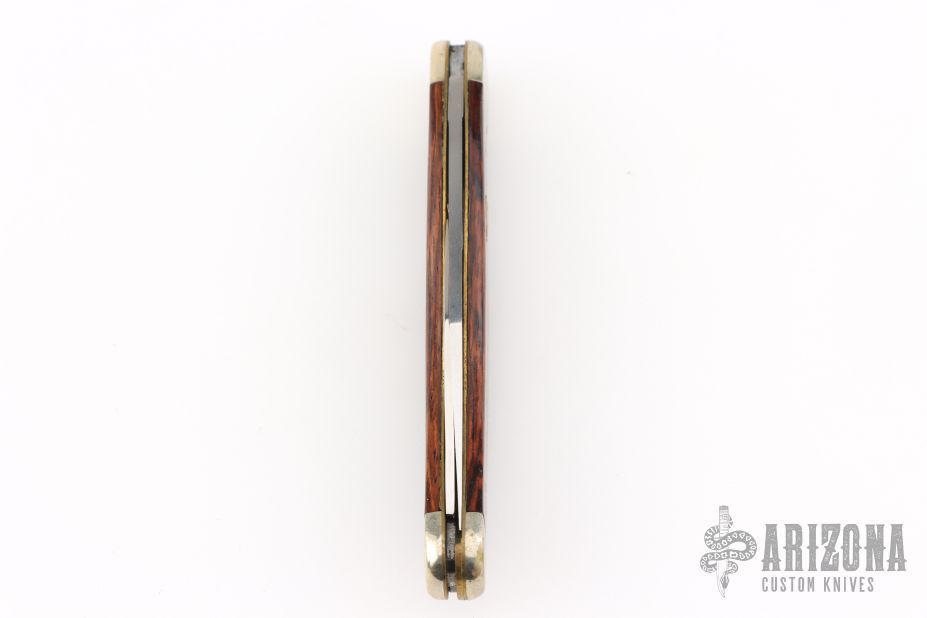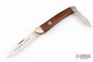 This 572 Senior Slipjoint by Puma Knives features satin finished blades with nail nicks. The handle has nickel silver bolsters, cocobolo covers, brass liners and stainless steel spring. Comes with original box and papers. Has some scuffs, scratches, and patina. Great overall condition for its age.