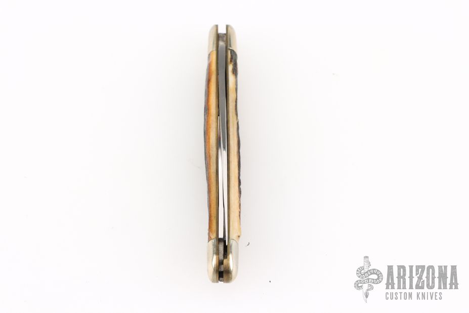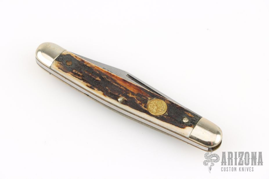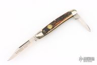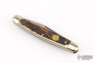 This 673 Bantam from Puma Knives features three mirror finish blades with nail nicks. The handle is comprised of nickel silver cap and bolsters with jigged bone covers over brass liners and stainless steel springs. Includes original box and papers. Has some light scuffs and scratches, excellent condition otherwise.