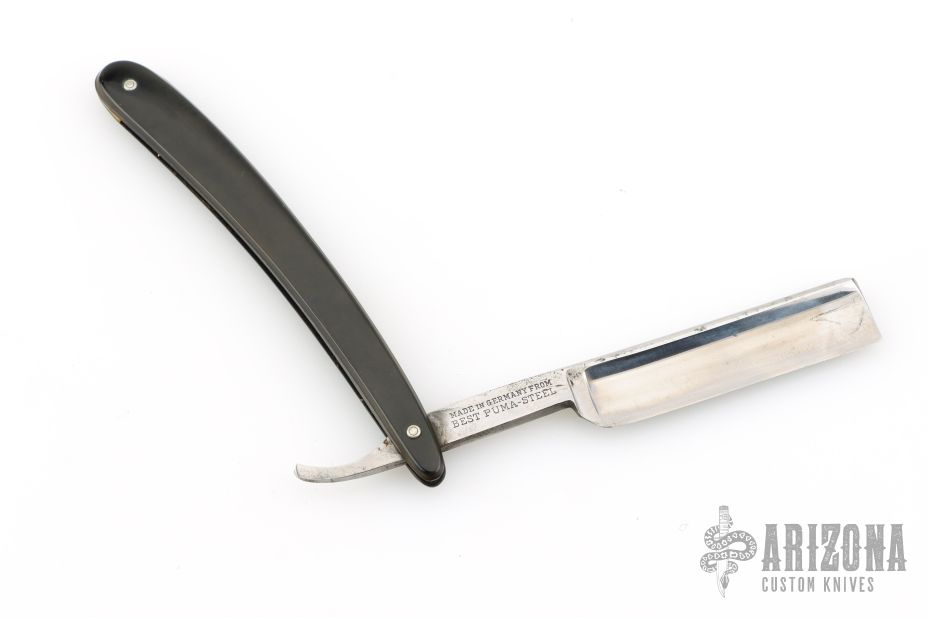 This Straight Razor by Puma features a full hollow ground, polish finished blade with a brown handle. Has scuffs, scratches, and patina. Good overall condition.