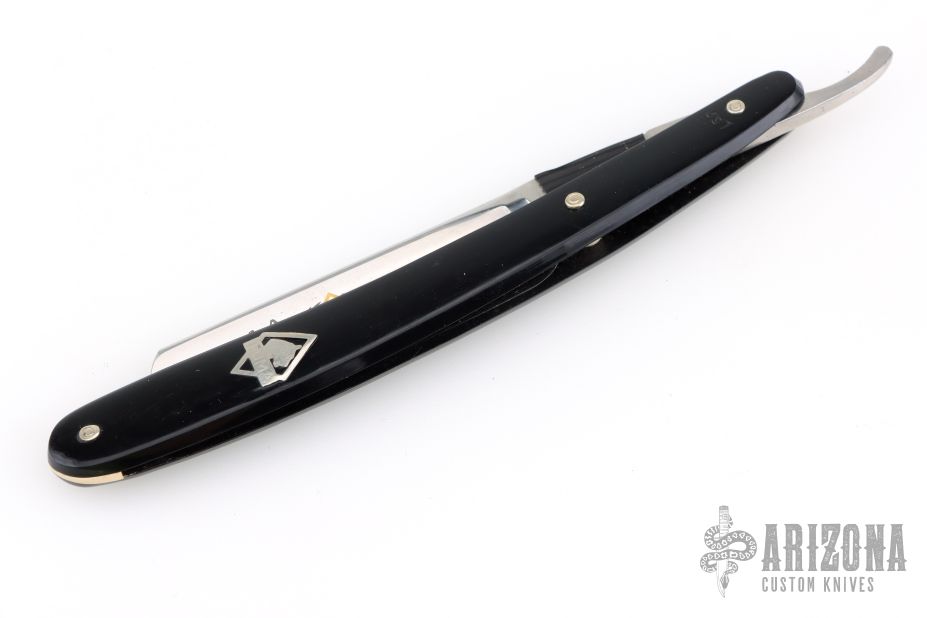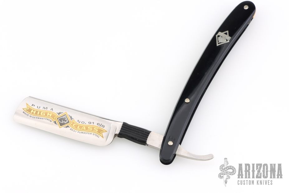 This Straight Razor by Puma features a full hollow ground, satin finished blade with a black handle. Has scuffs, scratches, and patina. Great overall condition.