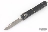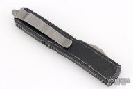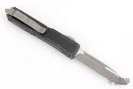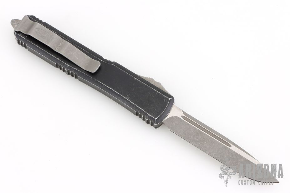 This Ultratech by Microtech features an apocalyptic finished blade. The handle has a distressed black aluminum frame with a tip down apocalyptic finished stainless steel clip. Comes with original box and papers. Dated 06/2021 and s/n 203402. Excellent condition.