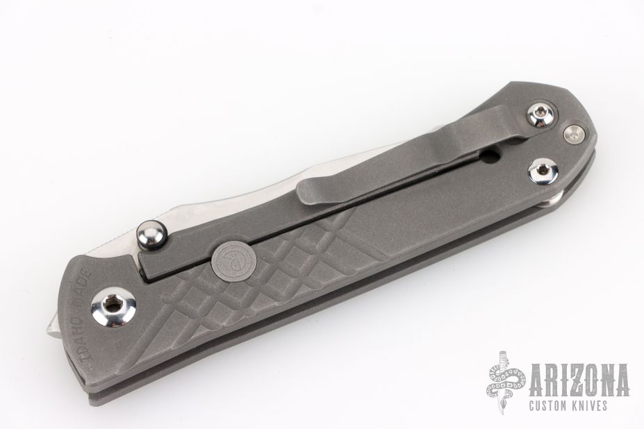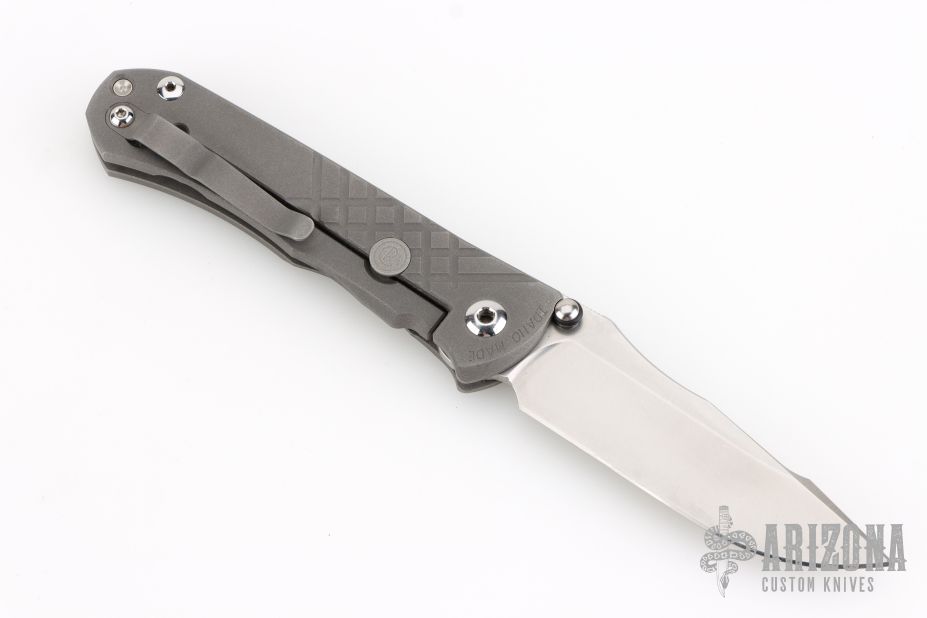 This Unumzaan from Chris Reeve Knives features a stonewash finished blade with dual thumb studs and notched thumbrest. The handle is comprised of blasted and milled titanium with matching tip up clip. Lanyard pin with lanyard and spacer bead in pommel. Comes with original box, papers, lube and tool and COA dated July 31 2024. Has scuffs and scratches, great overall condition.