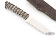 This "Croc" by Arno Bernard is part of the "Predator Series" of knives. This piece has Mammoth Tooth scales. Hand rubbed satin finish blade with .123" blade stock and 1.127" blade depth. Includes a brown leather sheath. Excellent condition.
