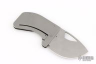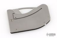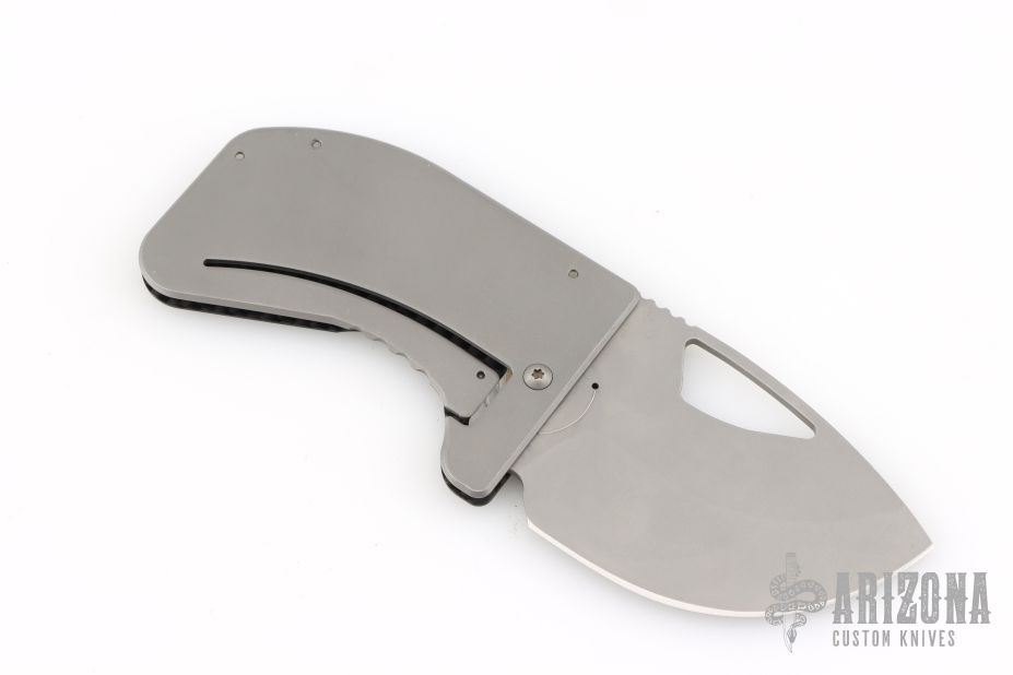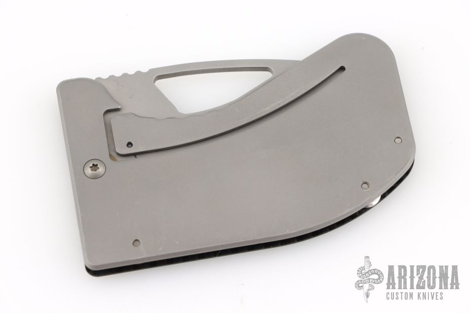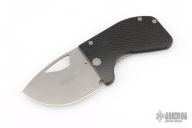 This Option II folder by Microtech features a stonewashed plain edge blade with notched thumbrest and a thumbhole. The handle is stainless steel with frame lock closure on one side and carbon fiber on the other. Dated 07/2001 and S/N 0294. Has some light scuffs and scratches, excellent condition otherwise.