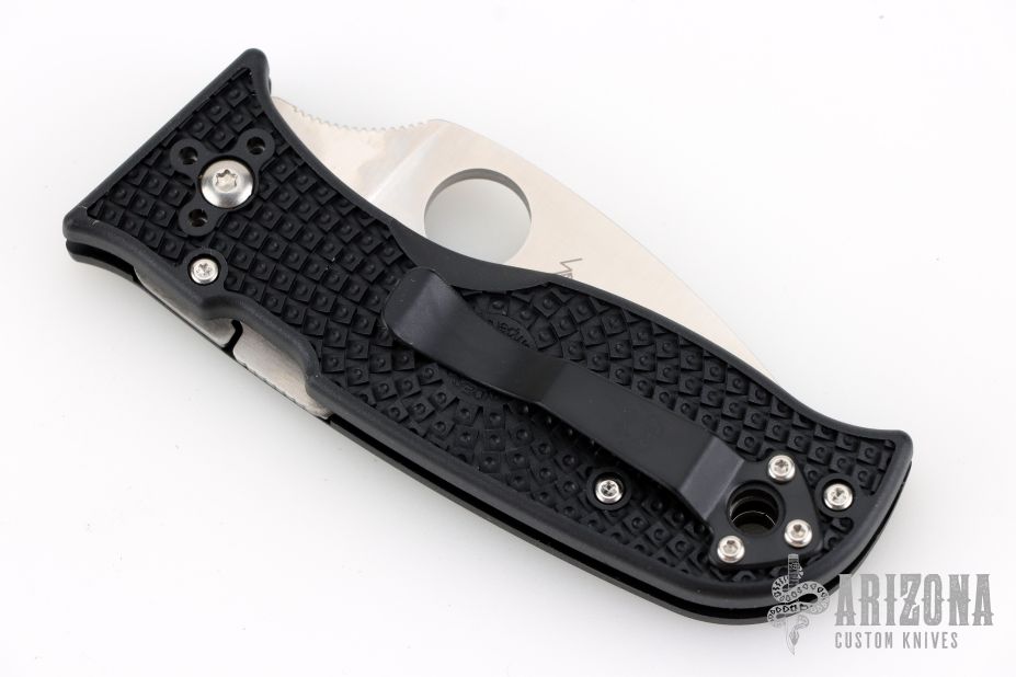 The Spyderco Lil' Temperance 3 utilizes the high performance qualities of the popular Temperance fixed blade and scaled them down into a compact EDC folder. This Lil'Temperance 3 revives the original design with a thinner handle and a fully reversible pocketclip. The fully flat ground blade is made from VG-10 steel with a plain edge and a satin finish. It has a black FRN handle that offers a simple, comfortable design with a high-strength compression lock mechanism. Flow through construction keeps the knife lightweight and pocket friendly.
