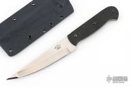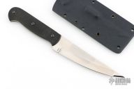 This Peshkabz by Bud Nealy features a compound ground hand rubbed satin finish blade w/ full tang construction, .089" blade stock and 1.098" blade depth. The handle has black G-10 scales with black hardware. Includes kydex sheath. #6051. Excellent condition.