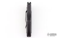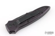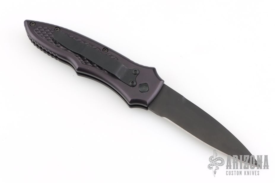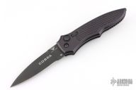 This Cobra side-opening automatic by Paragon Cutlery features a black blade with swedge. Coil spring. Sliding safety. Black aluminum handle with textured inserts, tip down black stainless steel clip. Comes with original box. Has a couple very light scuffs, otherwise excellent condition.