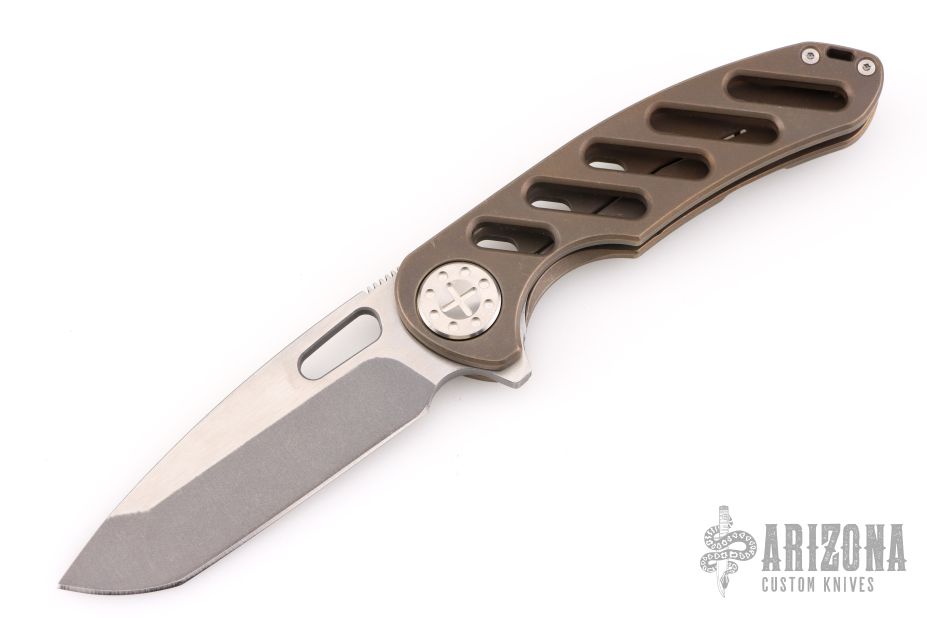 "Curtiss Custom Knives is a veteran owned small business. When I decided to create this business, I had one standard in mind. To make the best knives and give the best customer service possible. I am the only one in our shop. No magic mini shop monkeys or anything. I start with a thought and turn it into a CAD drawing. If I like what I see, I create run files and cut my parts on our waterjet machine. Yes we have a waterjet in our shop. After the materials are cut into the basic shapes, I use our CNC machining center for the secondary processes such as milling, drilling, pockets and tapping. I do my blade grinds by hand on 2″x 72″ belt grinders that I designed and built. Other shop equipment includes heat treat oven, blast cabinet, vibe machine and misc. other machines. Anything else is done by hand by me. I do all of my sharpening on a belt machine I built. All knives receive a 20 degree polished edge. I do currently outsource for some hardware but we hope to make that ourselves soon. So I do not put my knives in a “mid-tech” or “production” classification. I call my knives “CUSTOM”. We own and operate all machinery in house."