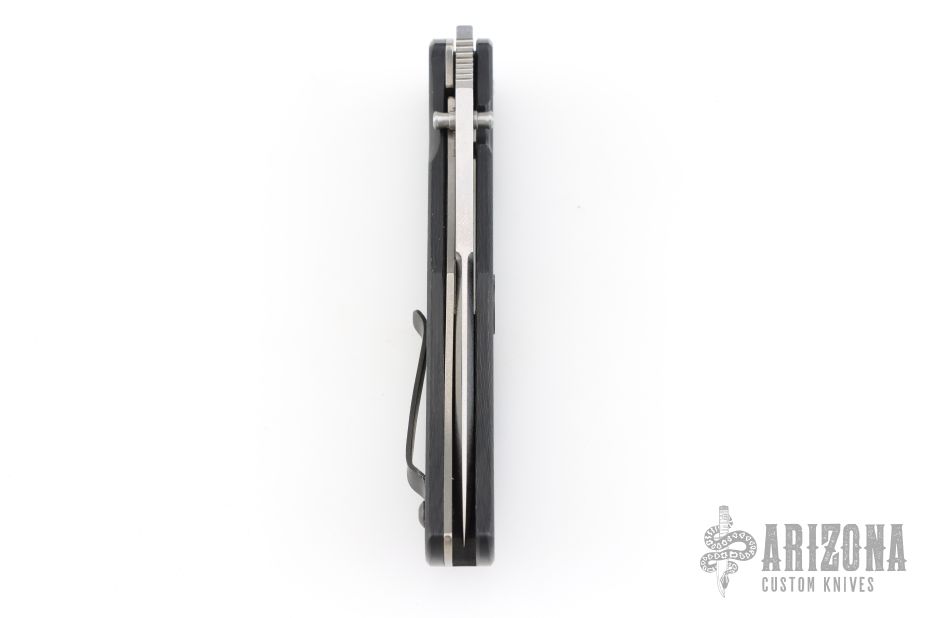 This Century Starfighter from Bob Terzuola features a tumbled blade with dual thumbstuds. The handle has carbon fiber scales with a single titanium liner, black backspacer, tip up titanium clip, lanyard hole. Nice detent, lockup and blade seating. Excellent condition.