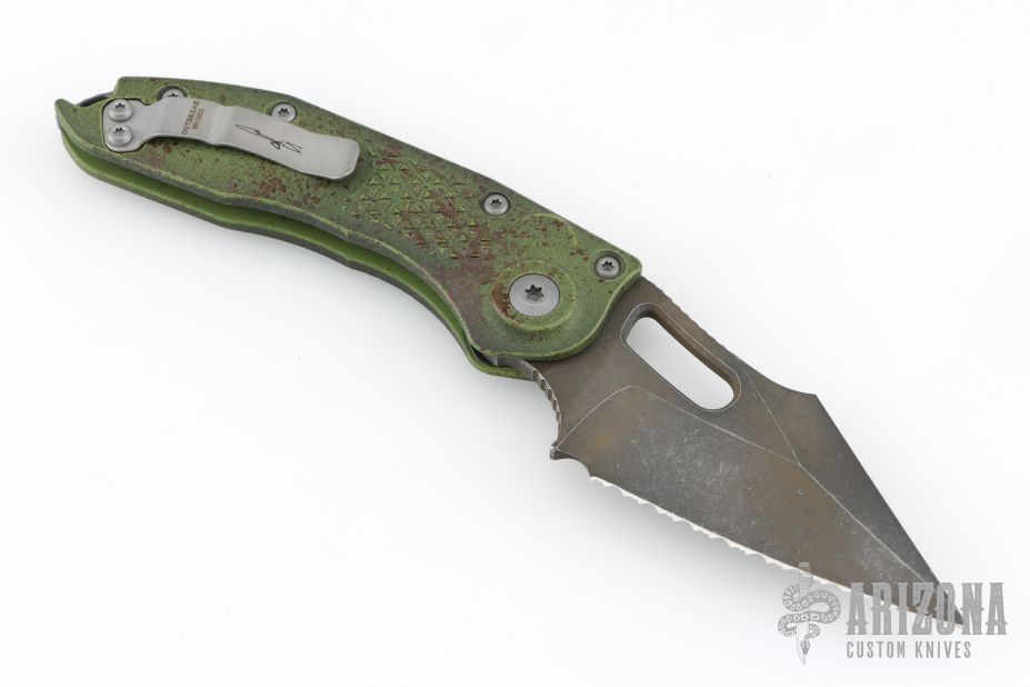 • Blade: Fully serrated Wharncliffe blade with a stonewash finish made from Bohler M390 steel.