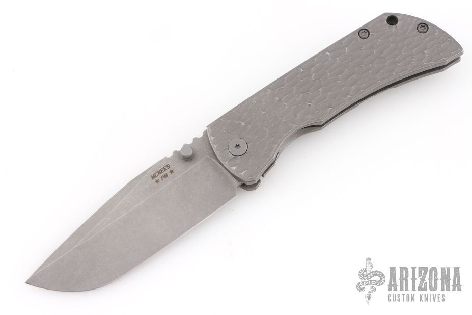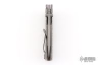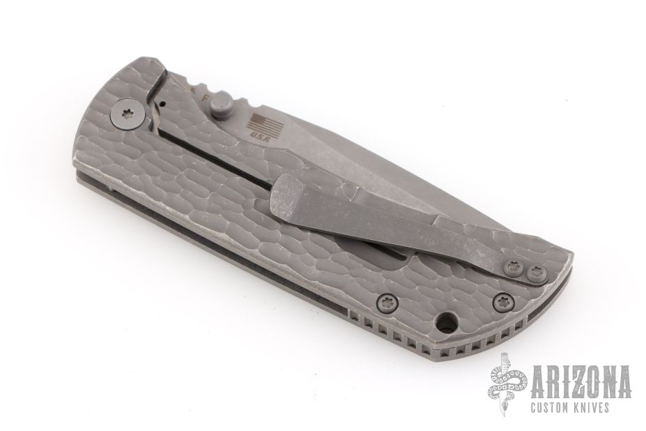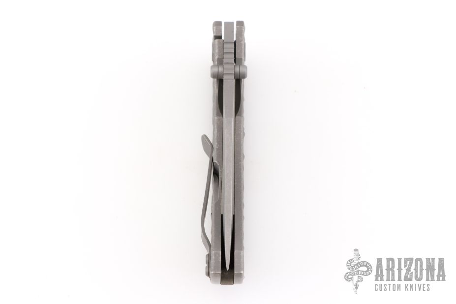 This MAC2 features a stonewashed drop point Magnacut blade with dual thumbstuds and a notched thumbrest.  The handle features an atomic jigged titanium frame with a matching tip up pocket clip. Comes with original box and papers. Excellent condition.