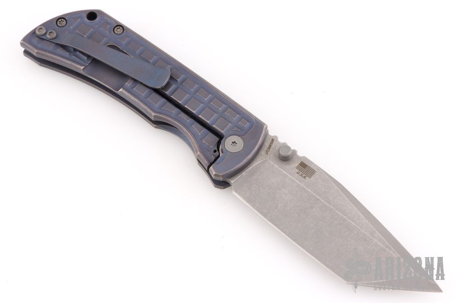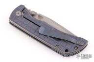 This MAC2 features a stonewashed tanto Magnacut blade with dual thumbstuds and a notched thumbrest.  The handle features a stonewashed and anodized atomic FRAG titanium frame with a matching tip up pocket clip. Comes with original box and papers. Excellent condition.