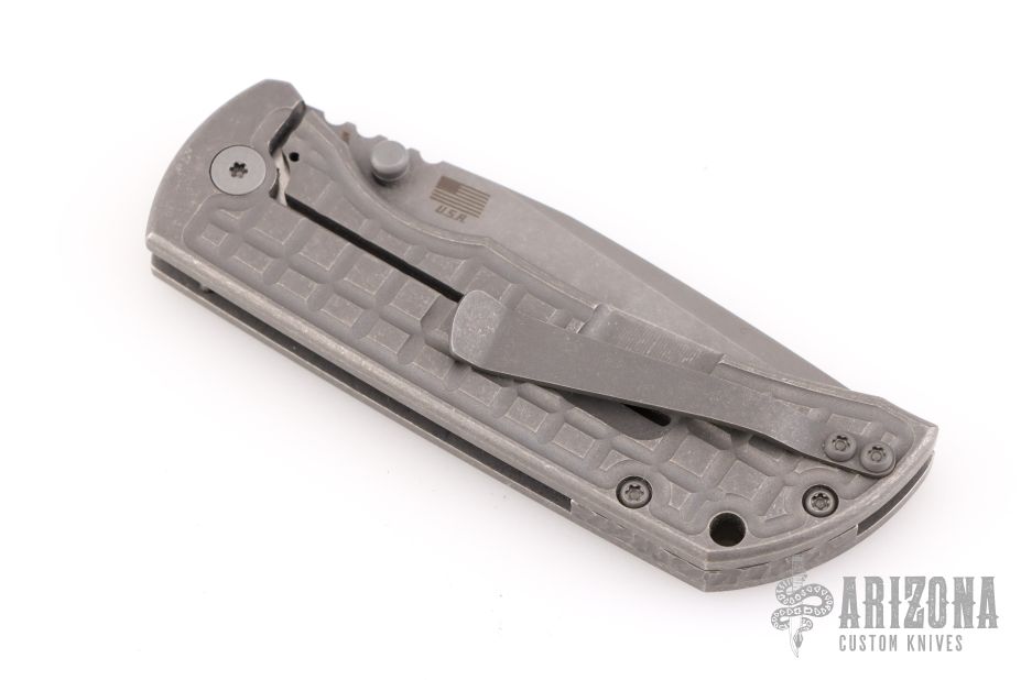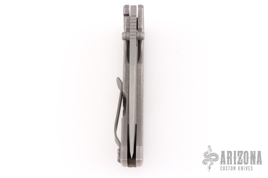 This MAC2 features a stonewashed tanto Magnacut blade with dual thumbstuds and a notched thumbrest.  The handle features a stonewashed titanium frame with a matching tip up pocket clip. Comes with McNees box, and COA dated 2024. Excellent condition.