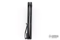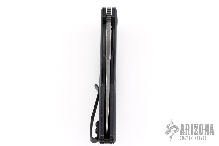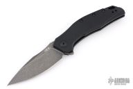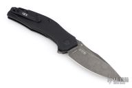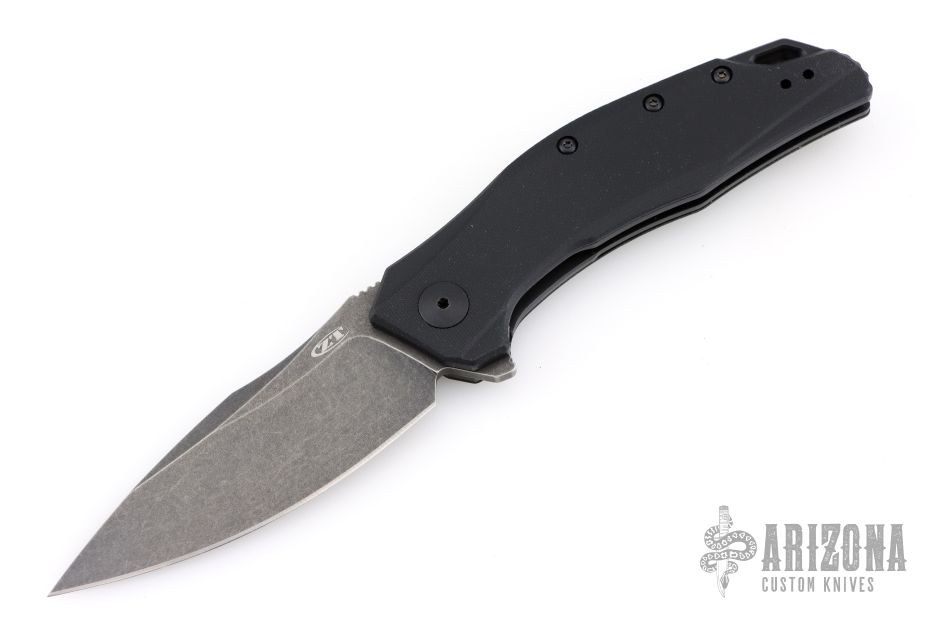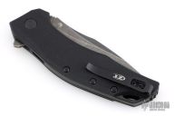 This 0357 by Zero Tolerance has a black stonewashed blade with notched thumbrest and flipper. The ZT 0357 is a premium knife designed for long, hard use. It's got a textured G-10 handle that allows a secure grip, and a long, broad CPM-20CV blade that is tough and will hold its edge. It runs on patented SpeedSafe assisted opening technology, so it will open every time without fail. S/N 9807. Comes with original box and paper. Excellent condition.