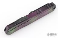 The Cypher has been refined, meticulously reengineered for a new era of out-the-front knives. The innovative dual fuel drivetrain ensures effortless actuation, providing a smoother action than ever before. Thoughtful details enhance both aesthetics and functionality. Stylish jimping on the chassis delivers a touch of sophistication and improved grip. The 6AL4V pocket clip with ceramic detent ensures secure and convenient carry options. The screwless body, integral glass breaker, and updated button pocket design contribute to a streamlined appearance and enhanced practicality.