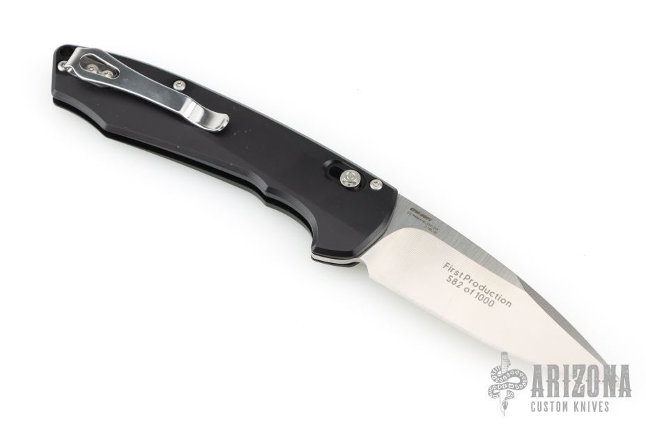 Benchmade's Amicus 490 is the first AXIS-Assist knife to utilize a flipper opener! Designed with everyday carry comfort in mind, it has a thin, lightweight 7075-T6 aluminum handle with a deep carry, reversible pocket clip. For an added measure of protection, Benchmade has included a front-mounted safety lock. The Amicus 490 has a stonewash finished blade with a plain cutting edge. Includes the original box, pouch and papers. Excellent Condition.